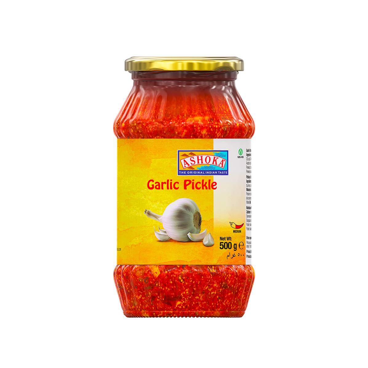 Le pickle d'ail est un condiment indien populaire qui est fabriqué en marinant des gousses d'ail dans des épices et du vinaigre.