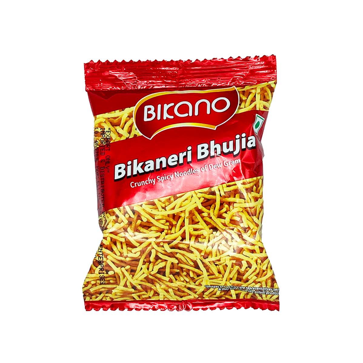 Le Bikano Bikaneri Bhujia est une collation indienne populaire fabriquée par la société Bikanervala, qui est une entreprise alimentaire basée en Inde. Cette collation est faite à partir de farine de pois chiche, d'huile végétale, d'épices et de sel. Les ingrédients sont mélangés pour former une pâte qui est ensuite pressée à travers une machine spéciale pour créer de fins fils de pâte.