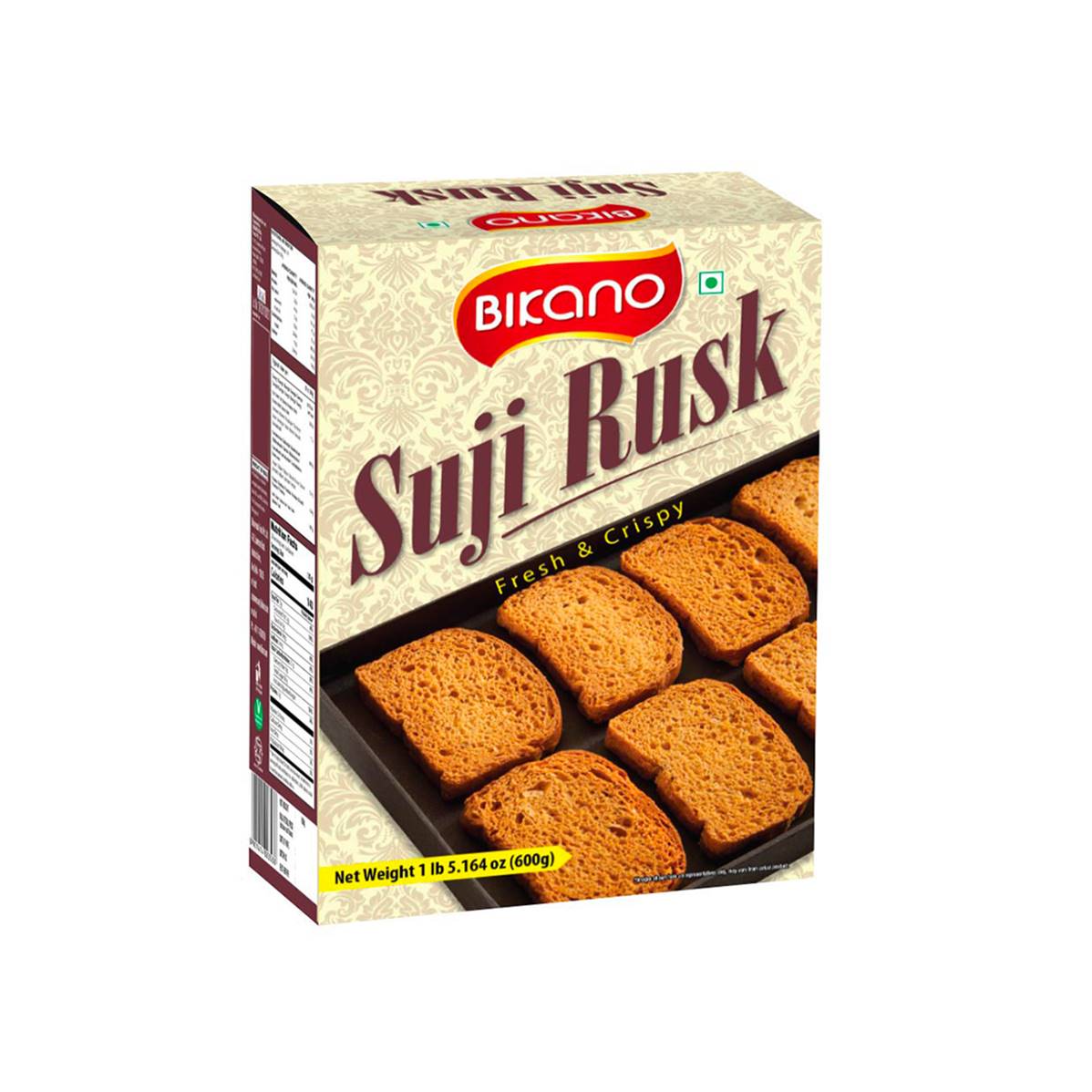 Le Suji Rusk, également connu sous le nom de Semolina Rusk ou Sooji Rusk, est une biscotte croustillante faite à base de suji, une semoule de blé dur, généralement consommée en Inde comme en-cas ou au petit déjeuner avec du thé ou du café. La préparation du Suji Rusk implique l'utilisation de suji mélangé à de la farine ordinaire, du sucre et des matières grasses, comme du beurre ou du ghee. Le mélange est cuit sous forme de gâteau, puis coupé en fines tranches. Enfin, ces tranches sont cuites au four jusqu'à ce qu'elles deviennent sèches et croustillantes.