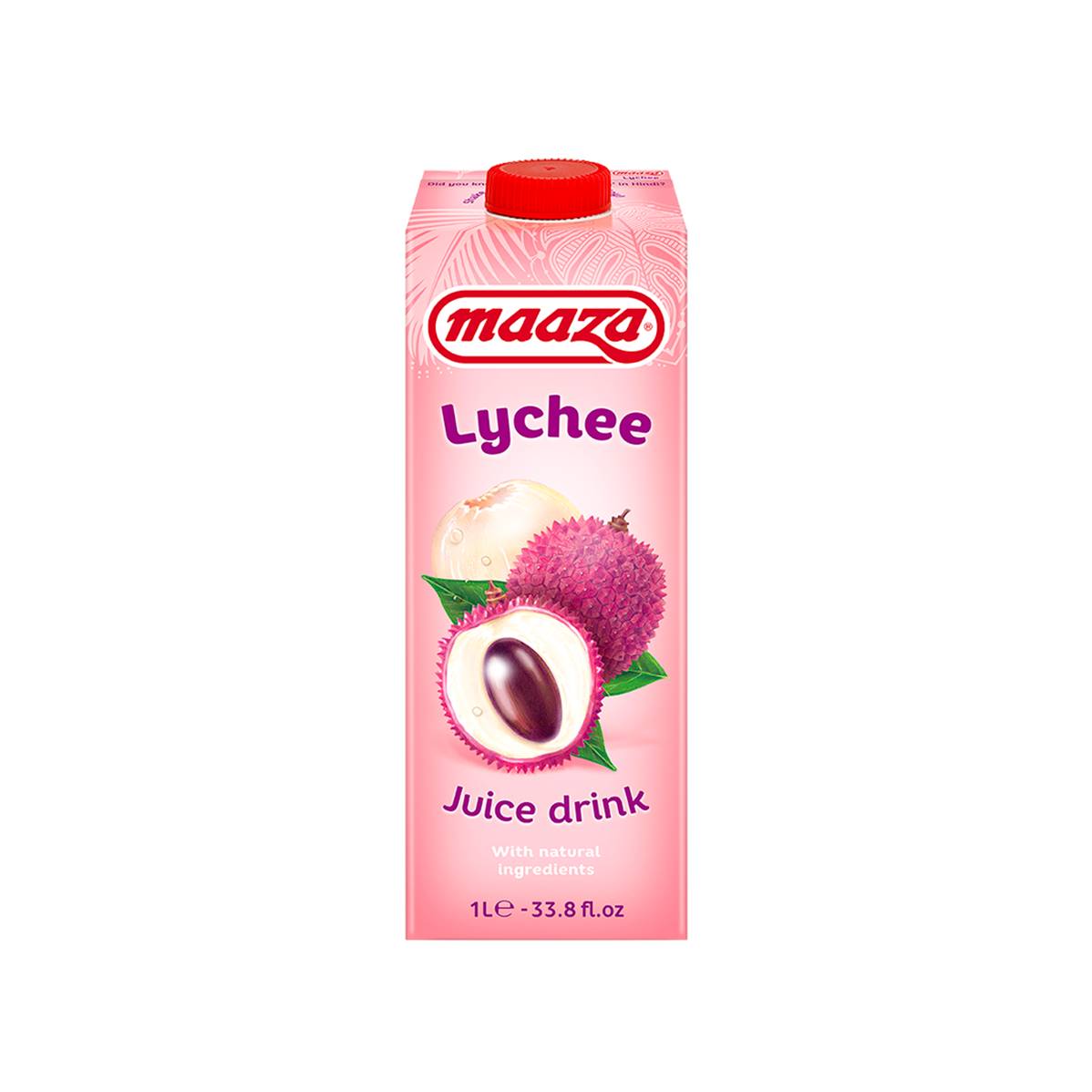 Boisson à base de litchi, fabriquée à partir d'un mélange de jus de litchi concentré, de sucre et d'eau. Maaza est une marque de boisson gazeuse populaire originaire d'Inde.