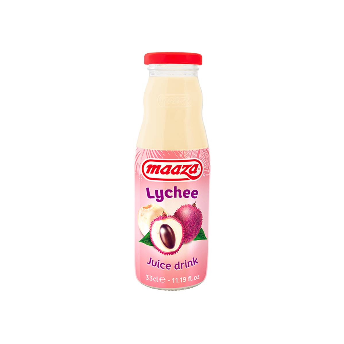 Boisson à base de litchi, fabriquée à partir d'un mélange de jus de litchi concentré, de sucre et d'eau. Maaza est une marque de boisson gazeuse populaire originaire d'Inde.