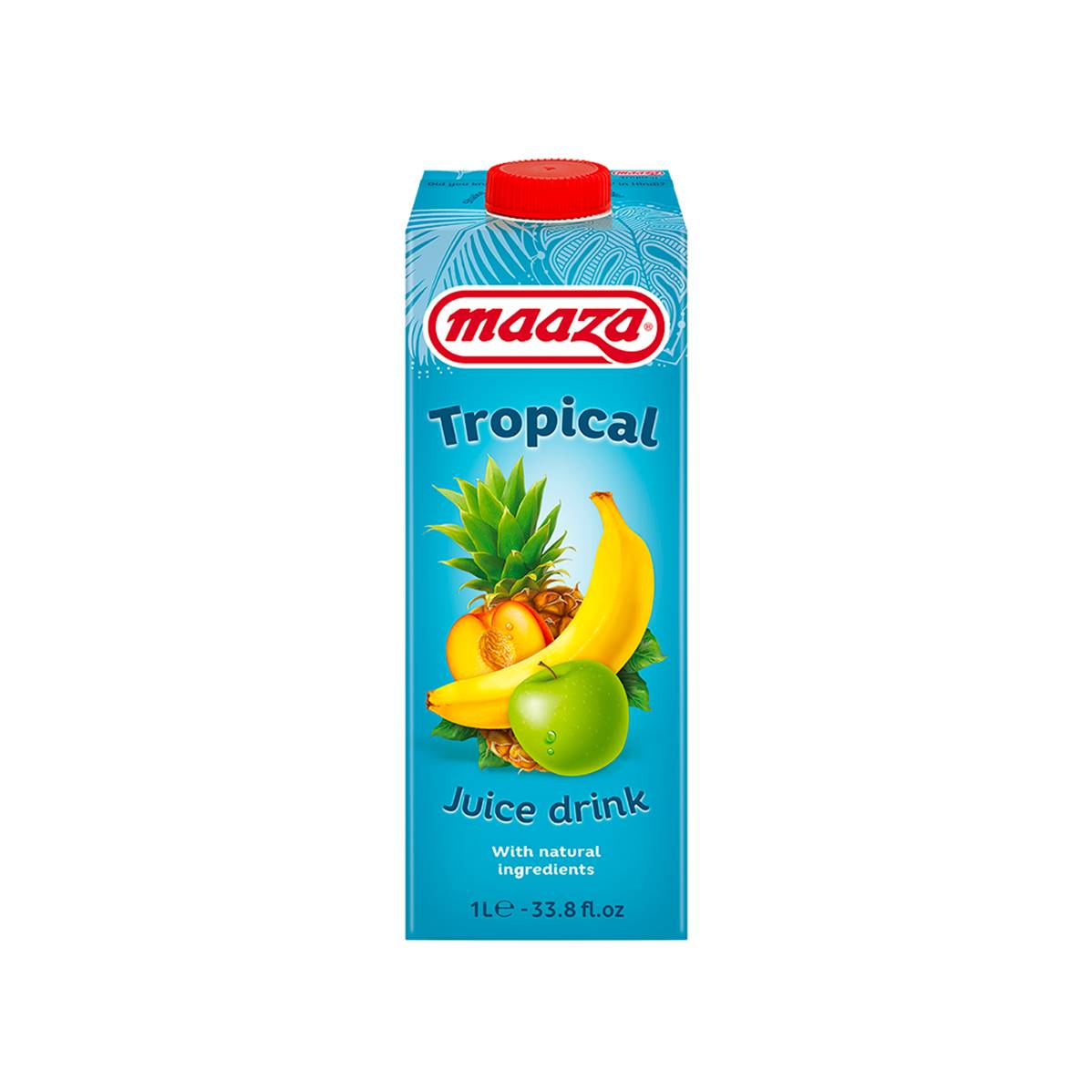 Boisson à base de fruits tropicaux, fabriquée à partir d'un mélange de jus de fruits tropicaux concentré, de sucre et d'eau. Maaza est une marque de boisson gazeuse populaire originaire d'Inde.