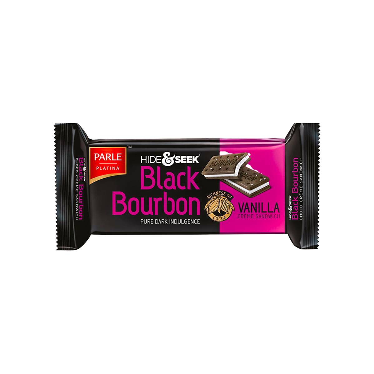 Il s'agit d'une variante du célèbre biscuit Hide & Seek, qui prend la forme d'un sandwich bourbon. Cette version se caractérise par deux biscuits au chocolat noir et croustillants qui entourent une garniture crémeuse àla vanille. Ces biscuits sont appréciés pour leur richesse en chocolat et leur texture croustillante. Ils sont souvent consommés comme une collation sucrée et sont particulièrement aimés des amateurs de chocolat et vanille. Le Parle Hide and Seek Black Bourbon Vanille peut être dégusté seul ou en accompagnement d'une tasse de lait, thé ou café.