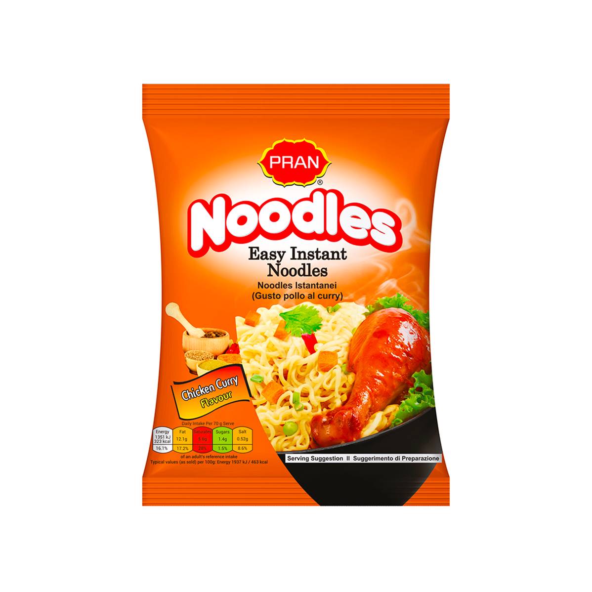 Les nouilles instantanées à l'arôme spécial poulet de la marque Pran sont un produit alimentaire populaire dans de nombreuses régions du monde, notamment en Asie. Ces nouilles sont fabriquées à partir de farine de blé et de sel, et sont pré-cuites pour faciliter leur préparation rapide.