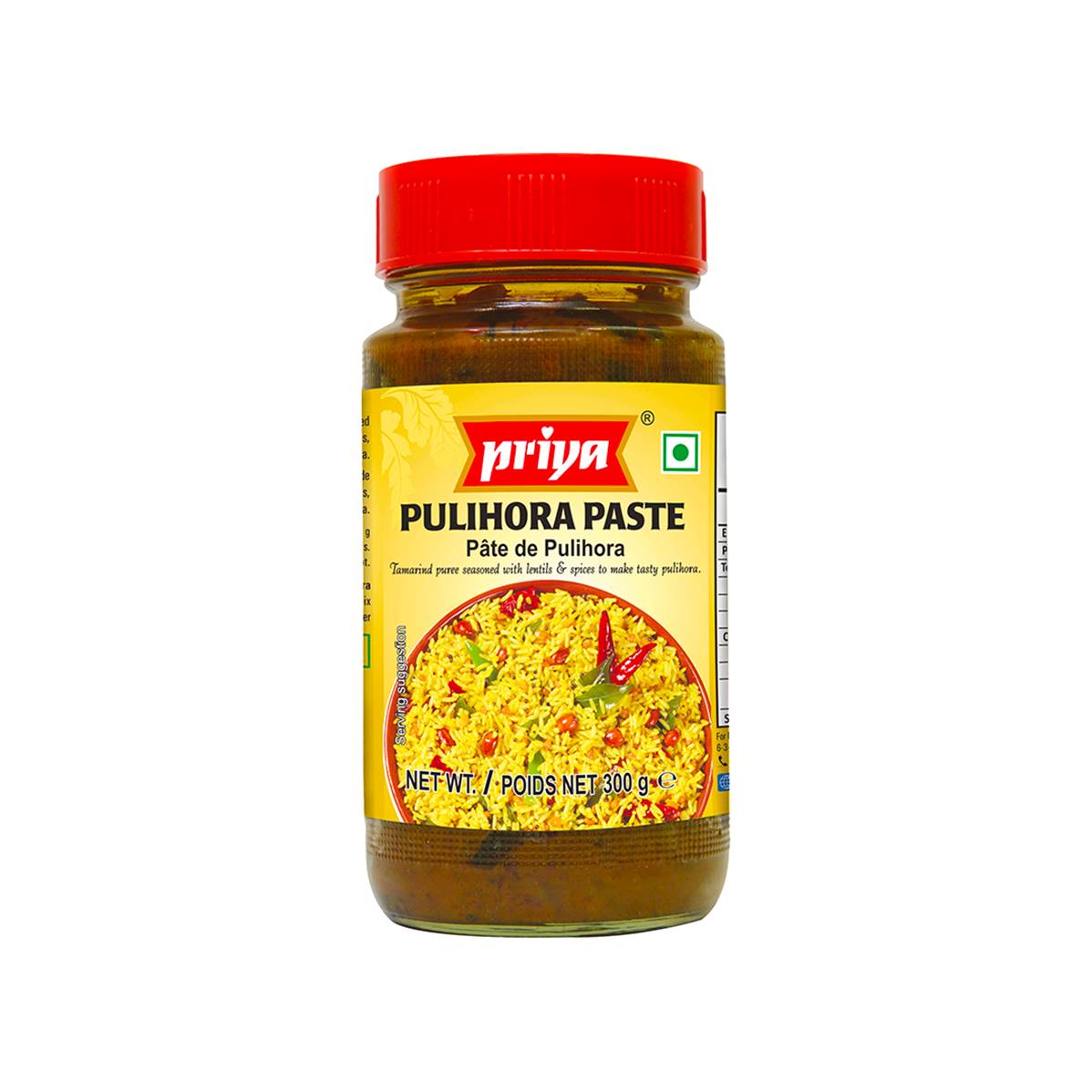 La Pulihora Paste est une pâte à base de tamarin utilisée pour préparer la Pulihora, un plat traditionnel de riz à la saveur aigre-douce de la cuisine indienne du Sud. La pâte est faite à partir de tamarin, d'huile végétale, de piments rouges, de graines de moutarde, de cumin et d'autres épices. C'est un plat consommé lors de grandes chaleur ou le plat typique pour les piqueniques.
