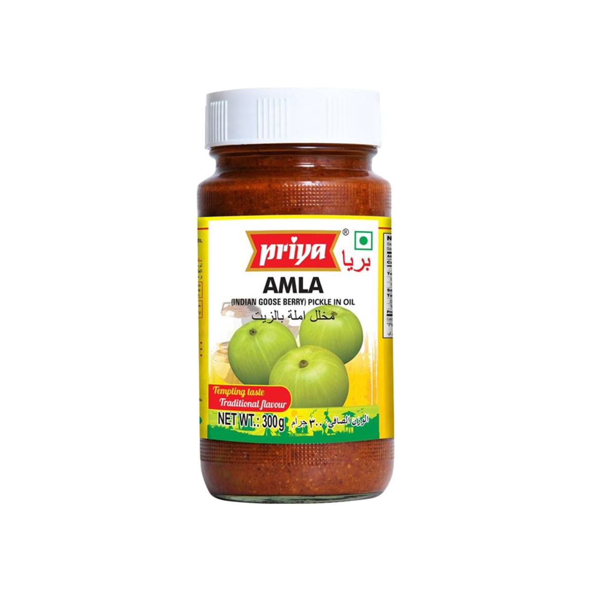 Le Amla pickle sans ail est un type de condiment populaire en Inde, qui est fabriqué à partir de l'amla (également connu sous le nom de groseilles à maquereau indiennes) coupé en morceaux et mariné dans un mélange d'épices et d'huile, sans l'utilisation d'ail.