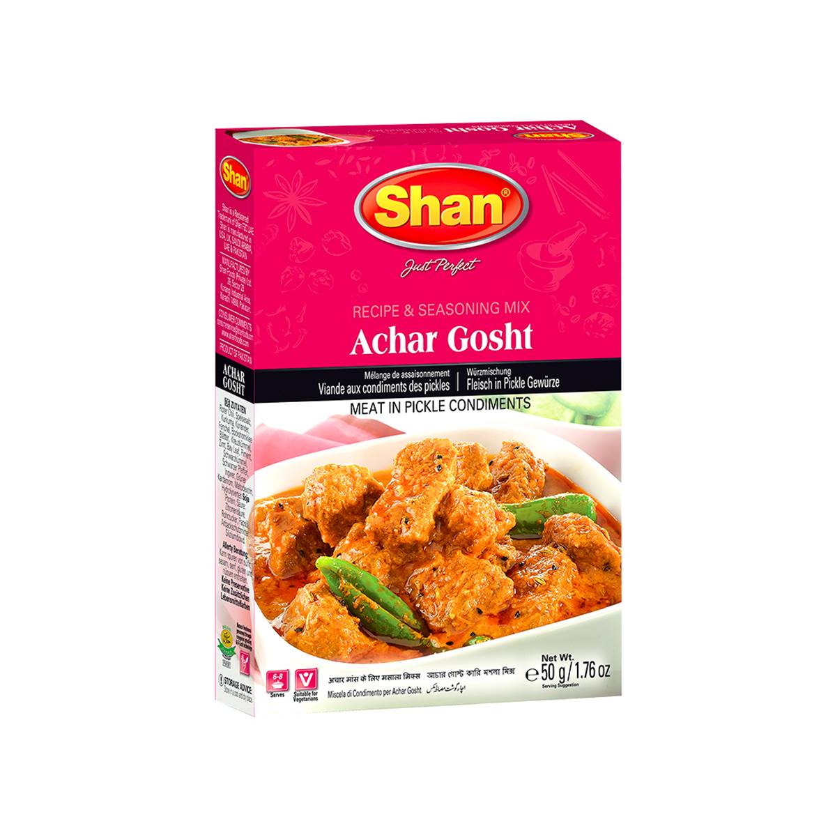 Découvrez le Shan Achar Ghost Masala, un mélange d'épices exquis qui vous permet de préparer un achar ghost, un plat traditionnel du sous-continent indien, particulièrement apprécié au Pakistan et en Inde. L'achar ghost est un ragoût de viande, généralement de l'agneau ou du bœuf, infusé d'épices parfumées et de légumes marinés, créant une saveur unique et légèrement acidulée. Ce plat, dont le nom « achar » fait référence aux pickles ou marinades, tire son origine des traditions culinaires des régions du Punjab et du Sindh, où les saveurs piquantes et les influences de la cuisine persane se rencontrent. Le Shan Achar Ghost Masala combine des ingrédients soigneusement sélectionnés pour une explosion de saveurs et de chaleur, tout en apportant un équilibre parfait. Parfait avec du riz basmati ou du naan, ce masala transforme chaque repas en un festin épicé et authentique.